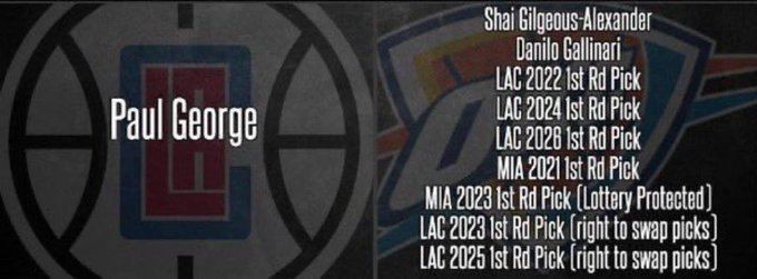 Los Clippers reconocieron el gran intercambio que realizaron para adquirir a George, que incluyó a Shai Gilgeous-Alexander, cinco selecciones de primera ronda y dos intercambios de selecciones, y agregaron:
