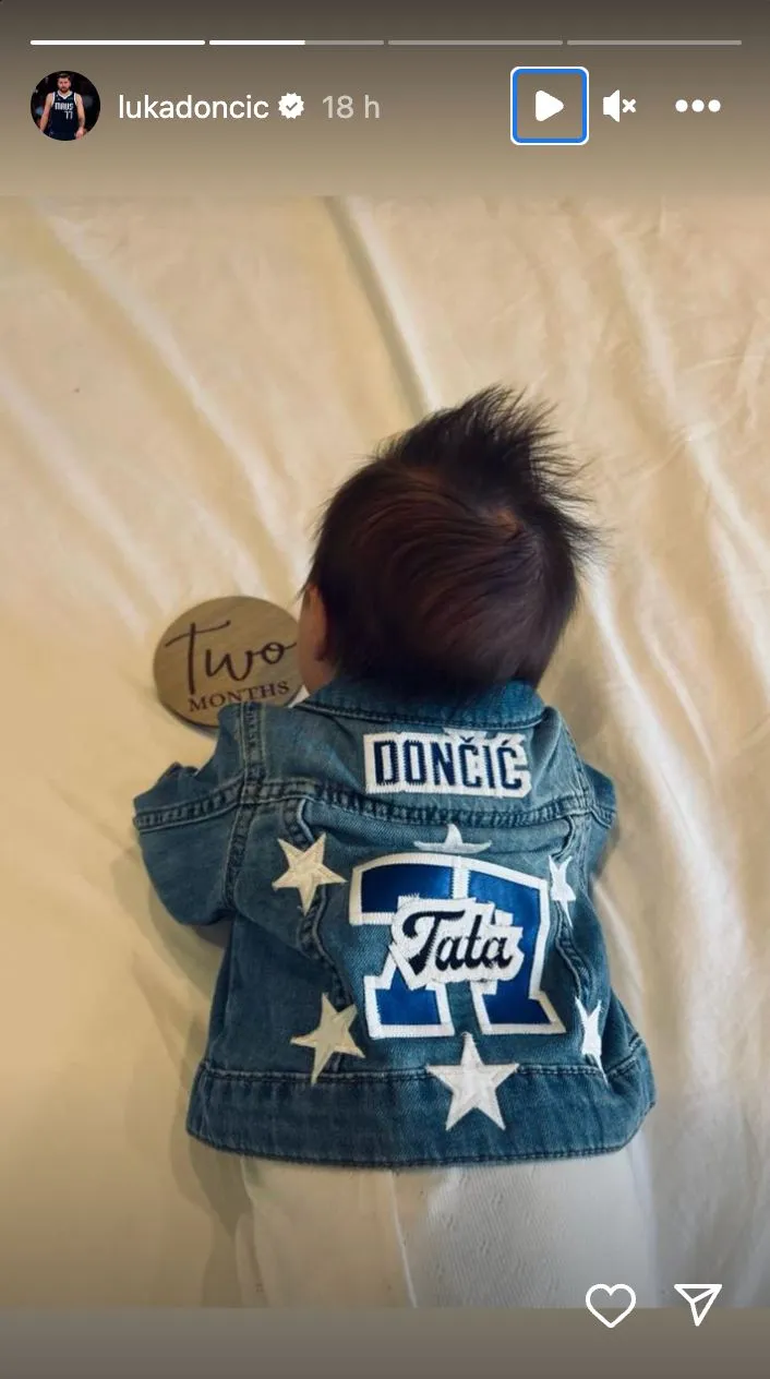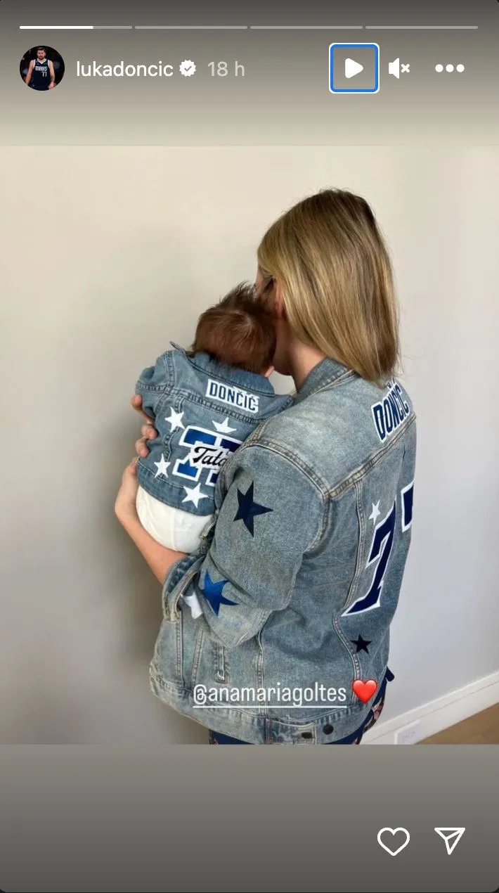 Goltes compartió la imagen en su propio feed de Instagram, y posteriormente, Doncic compartió una foto más detallada de Gabriela, revelando que la chaqueta está inscrita con "Tata", que traducido del esloveno al inglés significa "Padre". La foto también muestra una pequeña placa circular de madera con la inscripción 'dos meses', indicando la edad de Gabriela.